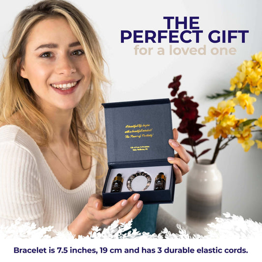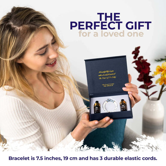 Sodalite + White Jade Lava Stone Aromatherapy Bracelet Gift Set with Bliss & Lavender Oil for Anxiety & Wellbeing